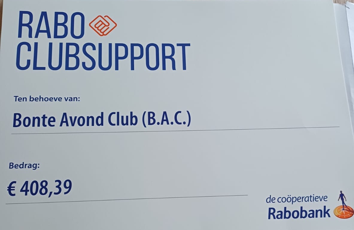 De BAC bedankt iedereen die op ons gestemd heeft bij de RaboclubsupportDit geld komt ook weer ten goede aan de activiteiten die we organisaeren ivm ons 75 jarige bestaan.